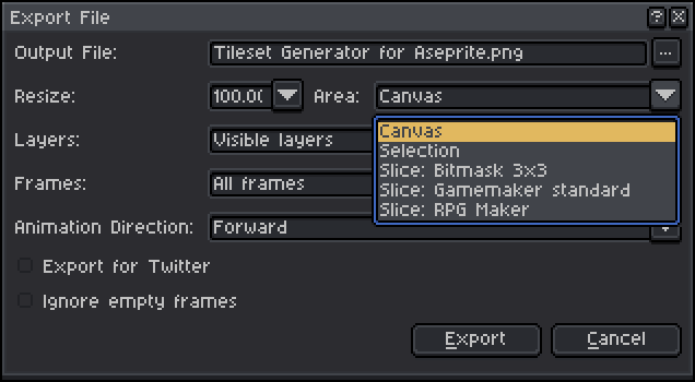 The file also allows you to export the tileset in 3x3 bitmask, Gamemaker or RPG Maker standard.